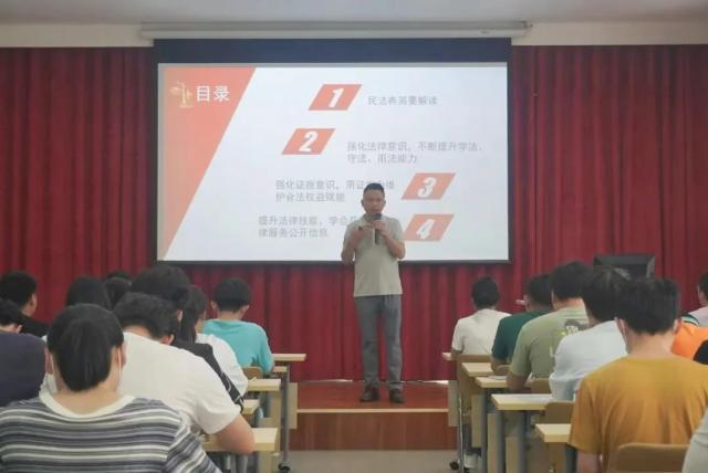 为深入学习宣传贯彻习近平新时代中国特色社会主义思想、习近平总书记关于学习宣传实施民法典的重要指示精神,深入学习宣传党的二十大精神。5月26日下午,我院联合浮梁镇人民政府举办“典亮校园·成长守护”民法典进校园宣传活动。特邀请浮梁镇人民政府法律顾问、江西景扬律师事务所合伙人律师吉海宝律师为我们授课!参加此次活动的有浮梁镇党委副书记胡志平、浮梁镇司法所所长孙灵敏、浮梁镇党委委员、音乐舞蹈学院青年教师李振龙、我院全体思政工作人员和学生代表。 吉海宝律师从《民法典》的内涵、如何在生活中提高法律意识等方面进行讲述,介绍了民法典的主要内容与重大意义。《民法典》是社会生活的百科全书,与我们的生活息息相关。吉律师运用热点案例来解读晦涩的法律知识,通俗易懂、趣味十足,期间不时提出问题增加与观众的互动,氛围满满。 此次活动,让学生更直观地了解了《民法典》,不仅有助于学生树立正确的法律意识,还能培养学生的社会责任感和法治精神,真正做到《民法典》往深里走、往实里走、往心里走。