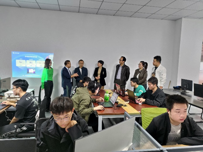 (本网讯:文|李光洁/图|吕云飞)为落实我校应用转型工作要求,强化学生优质就业。10月23日,我院20级计科专业19名学生,进入校产教融合大楼信工产业学院两家企业进行实训的试点工作正式启动。学生分成两队,分别进入善堂网络科技有限公司和景腾科技有限公司进行实训。我院党委书记练缤艳、党委副书记万涛、副院长李香泉及相关科室负责人到产教融合大楼了解学生实训情况及学习动态。