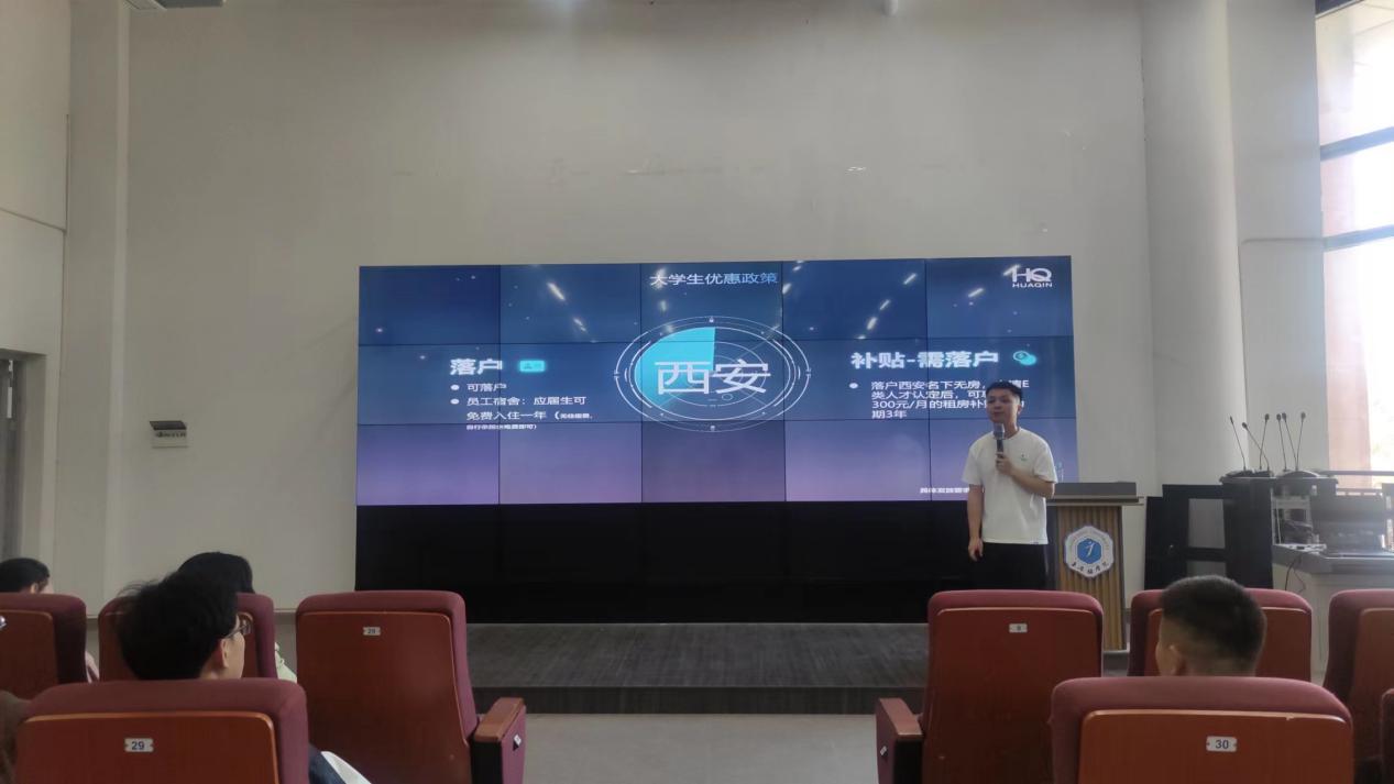 宣讲会上,华勤技术股份有限公司的校园招聘负责人分别就企业发展历程、企业文化、业务范围、市场竞争力等企业概况进行详细介绍,讲解了招聘岗位、职业发展、优惠政策、福利待遇,并向同学们公布了线上的招聘流程。同学们就薪资待遇、招聘面试等问题与招聘负责人进行了充分交流。