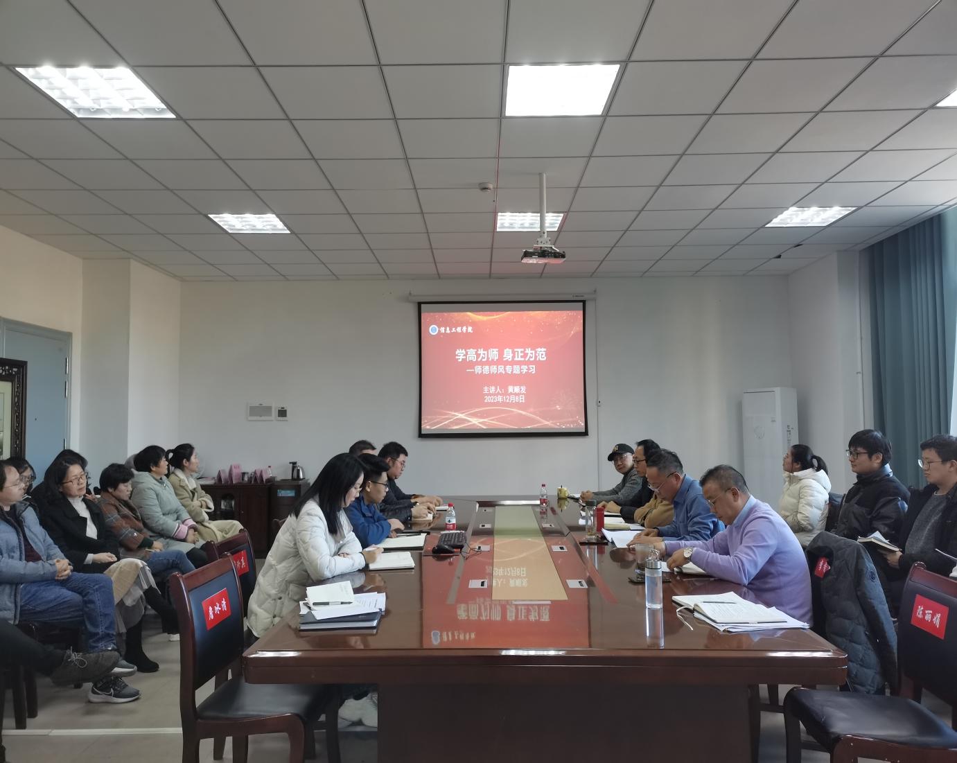 (本网讯:詹冰清)为进一步加强师德师风建设,提高教师职业道德素养,12月8日下午,我院开展“学高为师,身正为范”师德师风专题学习,学院行政负责人黄顺发主讲。