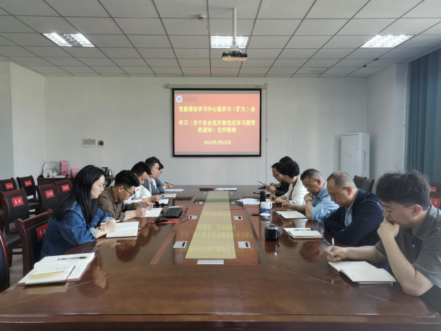 (本网讯:詹冰清)4月23日下午,我院在二楼会议室召开党委理论学习中心组学习(扩大)会议,学习习近平总书记文章《时刻保持解决大党独有难题的清醒和坚定,把党的伟大自我革命进行到底》、传达中共中央办公厅《关于在全党开展党纪学习教育的通知》文件精神。会议由学院党委书记练缤艳主持。