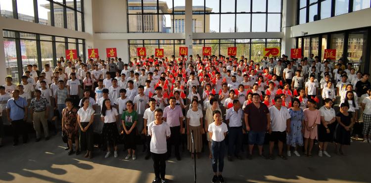 活动现场,伴随着《我和我的祖国》音乐声响起,全体师生齐声高唱,挥舞着手中的五星红旗,用饱满的热情唱出对祖国最真挚的深情热爱。