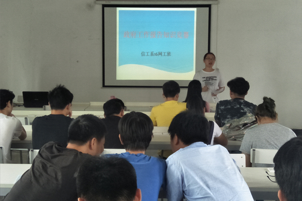 (本网讯:陈玉明)为引导学生关注和了解国家大政方针,进一步提升政治理论素养,信工系结合自身特点,以班级为单位,于5月21-25日开展了“测一测,2018政府工作报告知多少”在线学习答题活动。