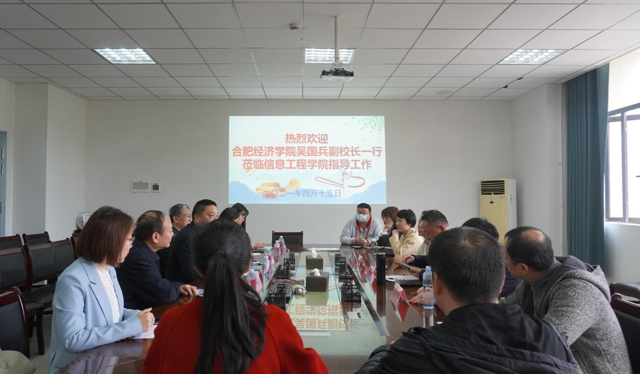 4月15日,合肥经济学院吴国兵副校长一行6人来到信工院进行交流访问,院党总支书记林瑶、行政负责人黄顺发及各科室负责人、相关专业老师参加了本次交流座谈会。会议黄顺发主持。