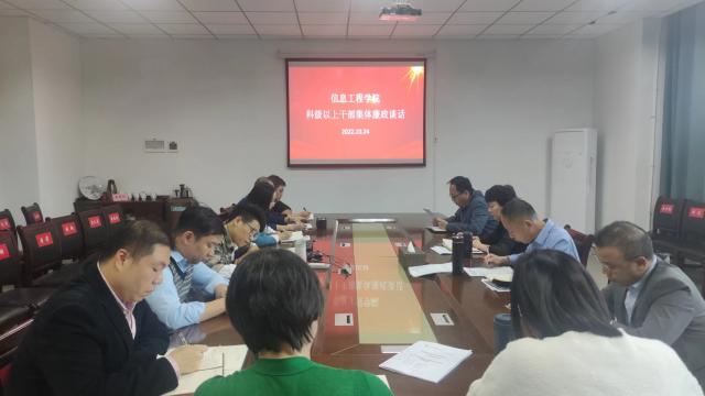 (本网讯:陈丽娟)10月24日,我院纪委组织学院科级干部在学院会议室进行集体廉政谈话,科级以上干部出席了会议,党委书记练缤艳、纪委书记万涛作了廉政讲话。