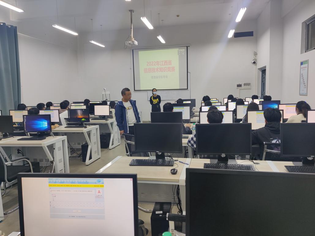 江西省大学生信息技术知识赛由江西省教育厅主办。我校有280余名同学报名参加,经过学校第四届信息技术选拔赛,最终选拔了80人,以线上竞赛的形式参加了2022年10月30日举行的江西省决赛。大赛自启动以来,学校教务处与beat365官方网站领导高度重视并给予大力支持,信工学院成立了竞赛领导小组,并组织了竞赛指导团队在开放式实验室进行了为期一个多月赛前培训。比赛期间由实验实训中心相关工作人员布置检查机房设施,为参赛学生提供了一个良好的竞赛环境。