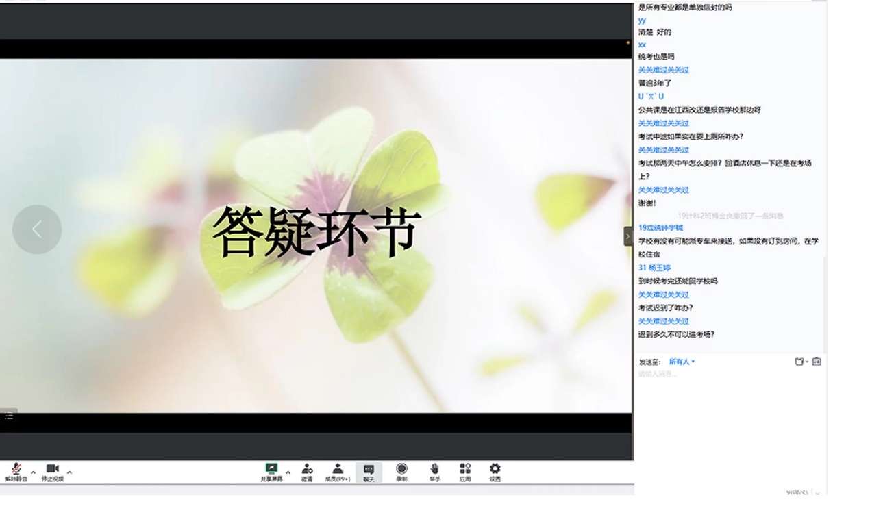 此次考研交流冲刺会,受疫情影响改为线上举行,虽各方条件受限,但学生对待知识的渴望无限,对待考研的热情无限,学院对待学生的关心无限,并将以此为契机,继续开展考研后续相关服务工作,持续关注考研学生的动态,继续保障考研学生的各类需求。同时,也预祝所有考研学生能够如愿以偿,顺利考上,迎来属于自己的美好明天。