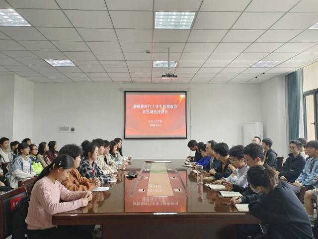 5月11日下午,我院在会议室召开新媒体时代大学生思想政治状况调查座谈会,学院党委副书记万涛、学生工作科科长吕云飞,全体辅导员、学业导师以及学生代表参加座谈会。
